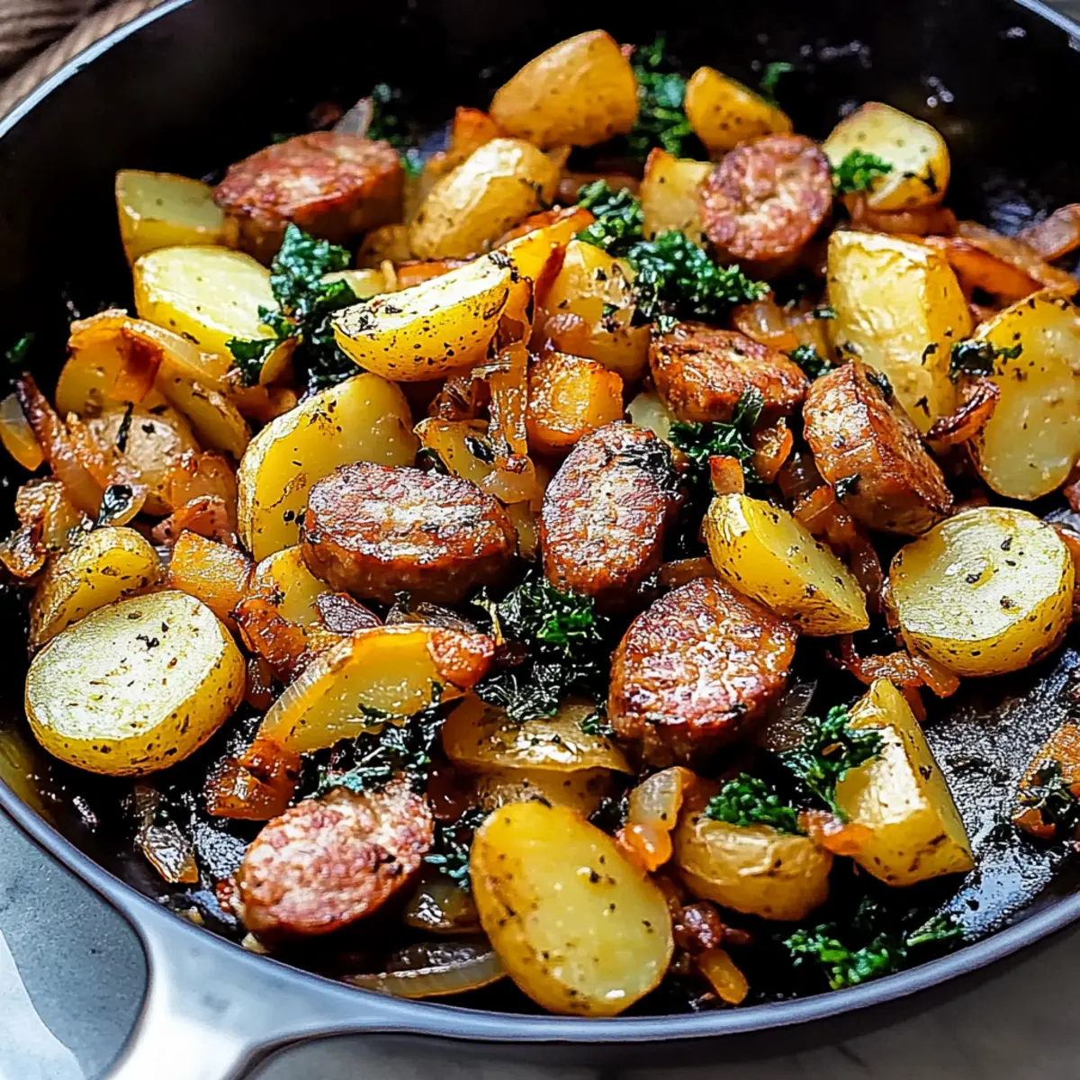 These Hearty Camping Meal: Sausage and Potatoes are perfect for meal prep enthusiasts! You can chop the potatoes, dice the onion and bell peppers, and mince the garlic up to 24 hours in advance and store them in airtight containers in the refrigerator to prevent browning. Additionally, you can pre-cook the sausage and store it separately for up to 3 days, ensuring your dish is just as flavorful when you’re ready to cook. When you’re ready to serve, simply heat a drizzle of olive oil in your skillet, add the prepared ingredients, and follow the finishing steps to enjoy a comforting meal with minimal effort. This prep ahead approach saves time and makes your camping experience more enjoyable!